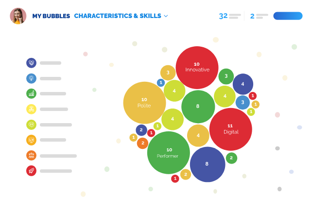 By simply popping a few bubbles, employees can share what they think their colleagues’ strongest suits are. This way, people get to understand their strengths, while managers and leaders get to see what skills, competencies or even people they might be missing to succeed now, and in the future.
